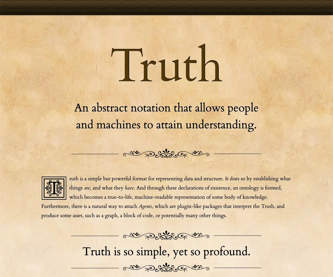 See the Truth source code on GitHubFor fun, I also designed and hand-coded a Gregorian-era themed landing page for the language: